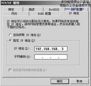 圖3 AboveCable 1100無線路由器的IP為192.168.168.230,因此這里我們設(shè)定為192.168.168.X(X=0255),至于“子網(wǎng)掩碼”可以暫時不要設(shè)定。